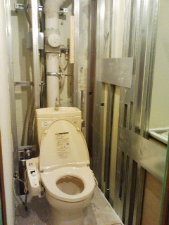 玄関/廊下とトイレの床と壁をはがしてやりなおすので、工事が始まってみるとかなりの騒音&埃。しばらく我慢したけどうるさいので、いつもより早く仕事に行った。(Dはどうするんかなー)と思いながら。