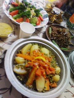 タジンというのはモロッコの鍋料理らしい。独特の形をしたお鍋(しまった!写真撮り忘れた!)が特徴でヘルシーなので最近日本でもはやっているみたい。