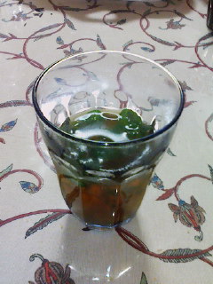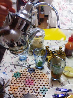 食後は、自家製ミント(ベランダに摘みに行ってくれた)の入ったモロッコティーでほっこり。