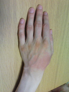友だちの家でBBQをした。 天気予報では雨だったけど、Tちゃんのてるてるぼうずが効いたらしく、最後まで雨は降らなかった。 大人8人、子供6人。プールも登場して楽しかった。 のはいいけど・・・ 日焼けが・・・ (左は半そでTシャツを着ていた私の腕。右は長そでシャツを着ていたDの手。)